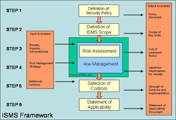 As shown in the figure above, the development of an ISMS framework entails the following 6 steps: